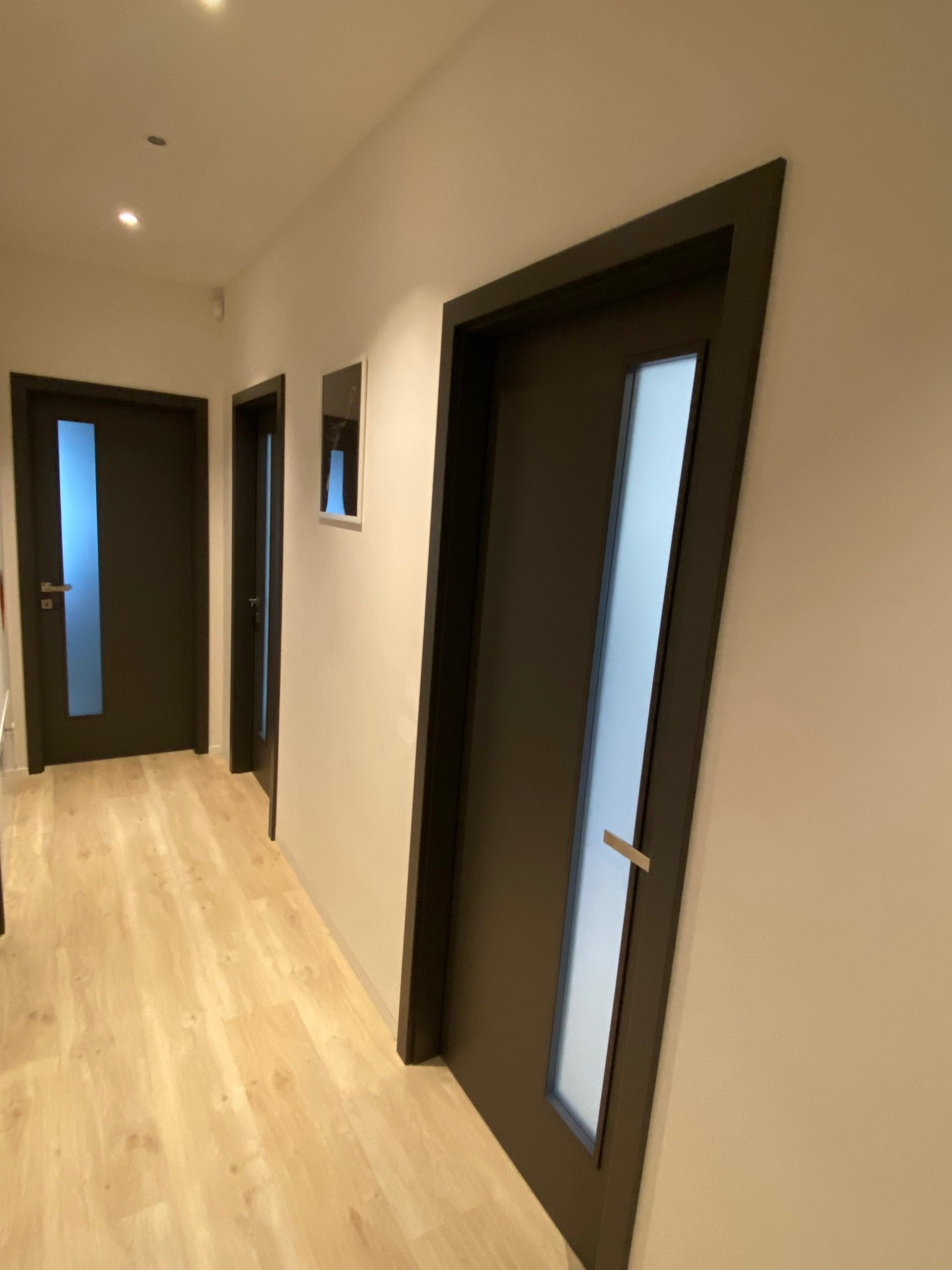 Společnost TOPDOORS dodala kompletní sadu interiérových bezfalcových dveří pro novostavbu rodinného domu v pražském Hloubětíně. Součástí dodávky byly plné dveře i dveře v designu Vertika, doplněné o posuvné varianty do stavebního pouzdra.
