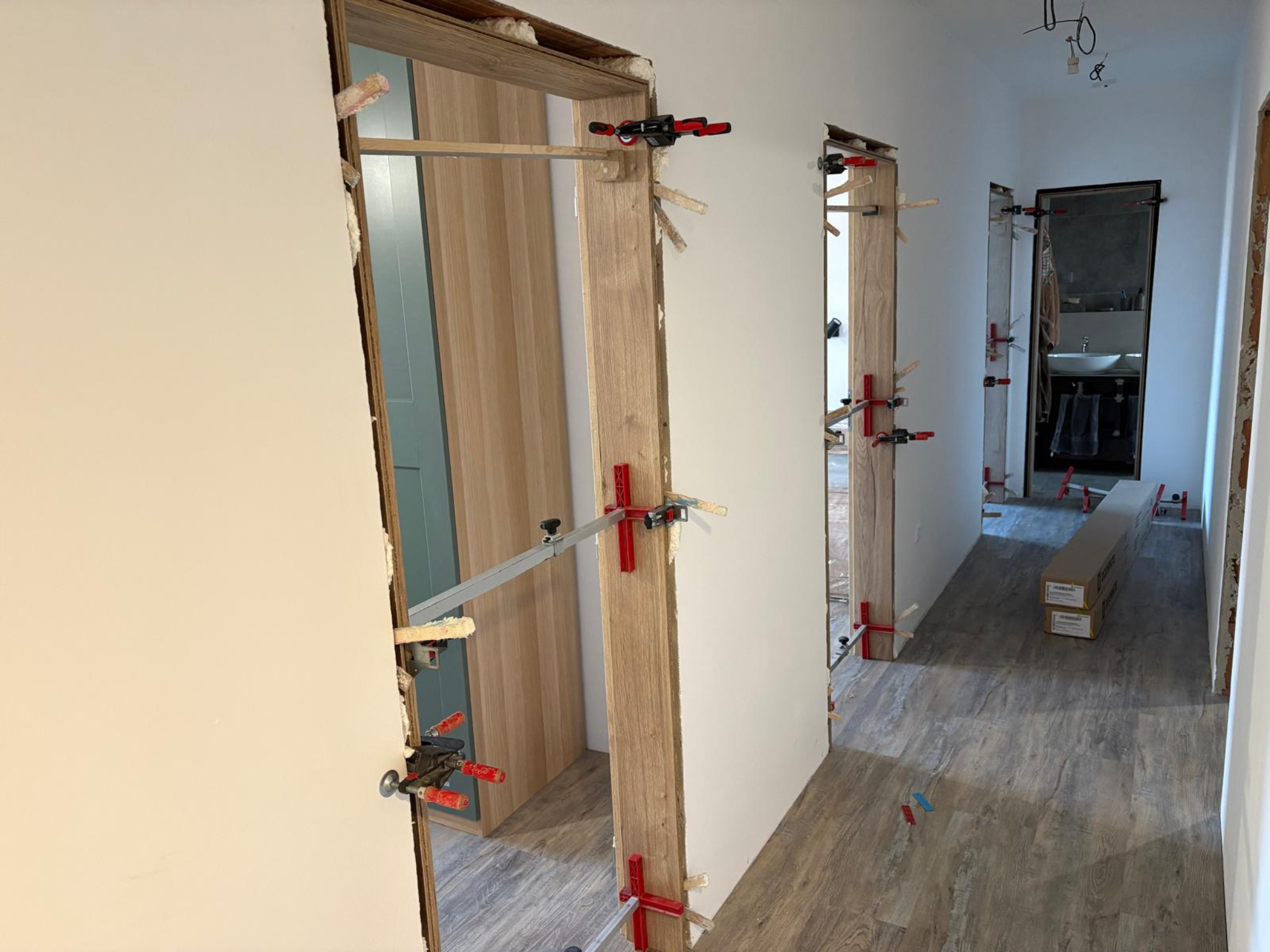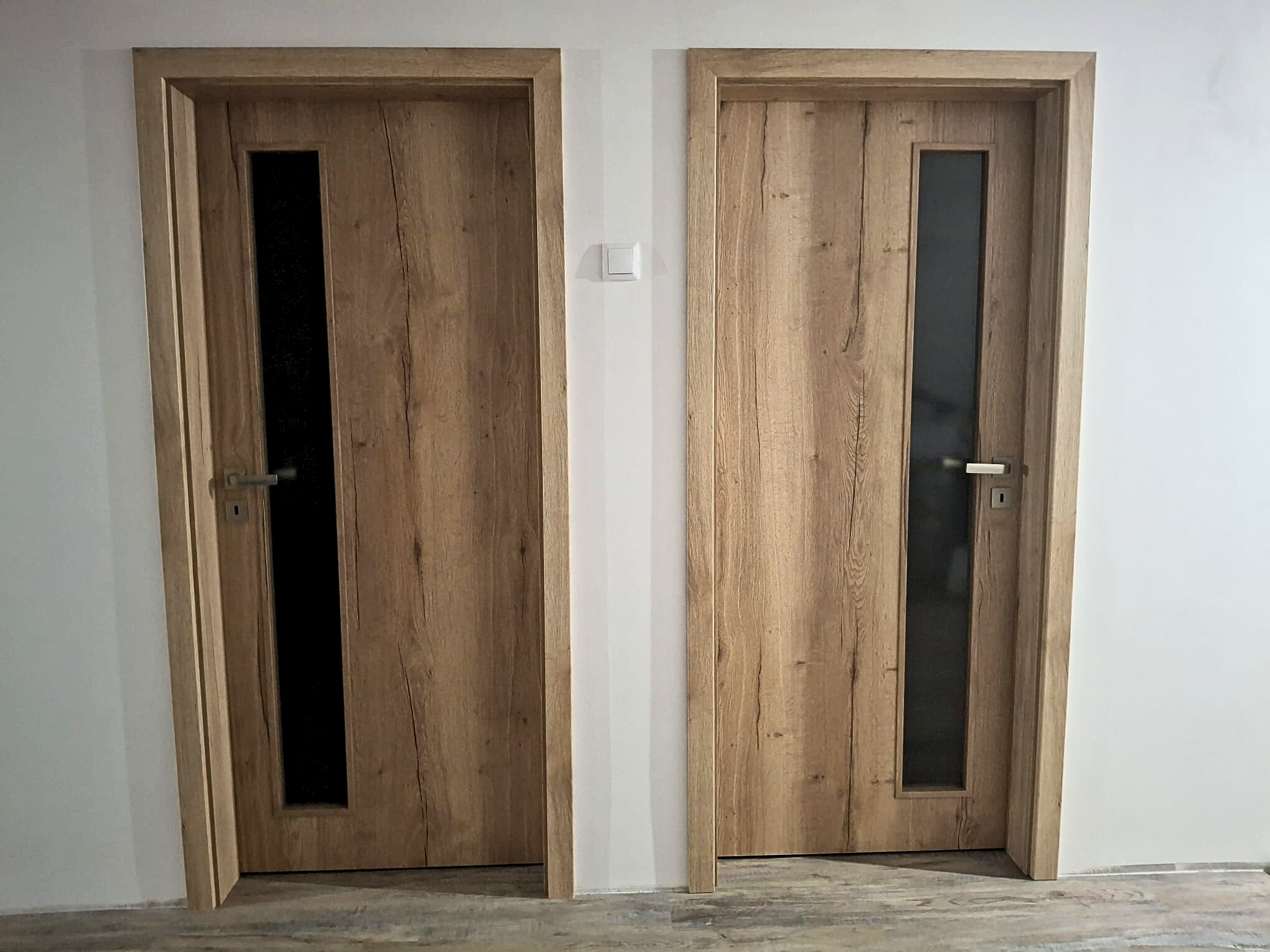 Společnost TOPDOORS realizovala dodávku a odbornou montáž interiérových falcových dveří v rodinném domě ve Včelákově. Součástí zakázky bylo 7 kompletních sestav dveří včetně obložkových zárubní, provedených na pokos, s důrazem na precizní zpracování detailů a jednotný vzhled interiéru.